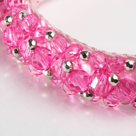 Farbe: Nylon-Halsband Pink, Acrylperlen Silber/Pink