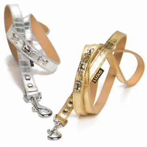 wunderbar, wiederstandfähige Artleder-Leine die mit drei mit Strass-Steinen