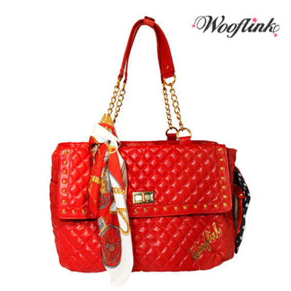 gesteppte Artledertasche, die in einem schönen rot gehalten ist. Die goldenen